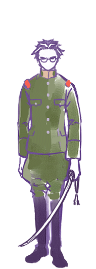 左から、 一之瀬中尉 / 久世曹長 / 神林大尉 / 霧島少尉 / 小芝上等兵 / 結城二等主計